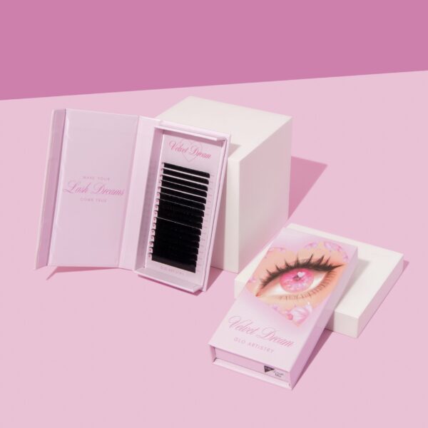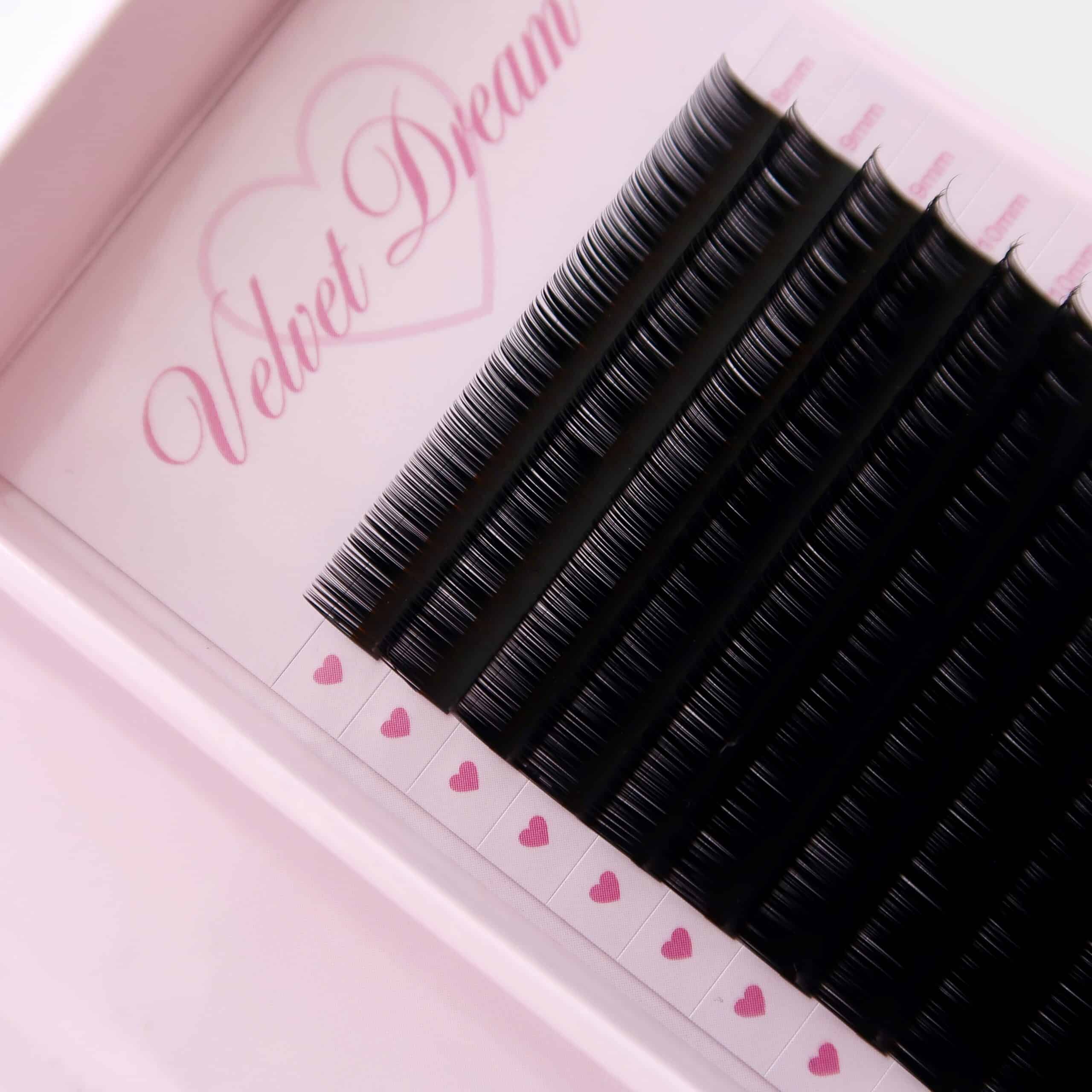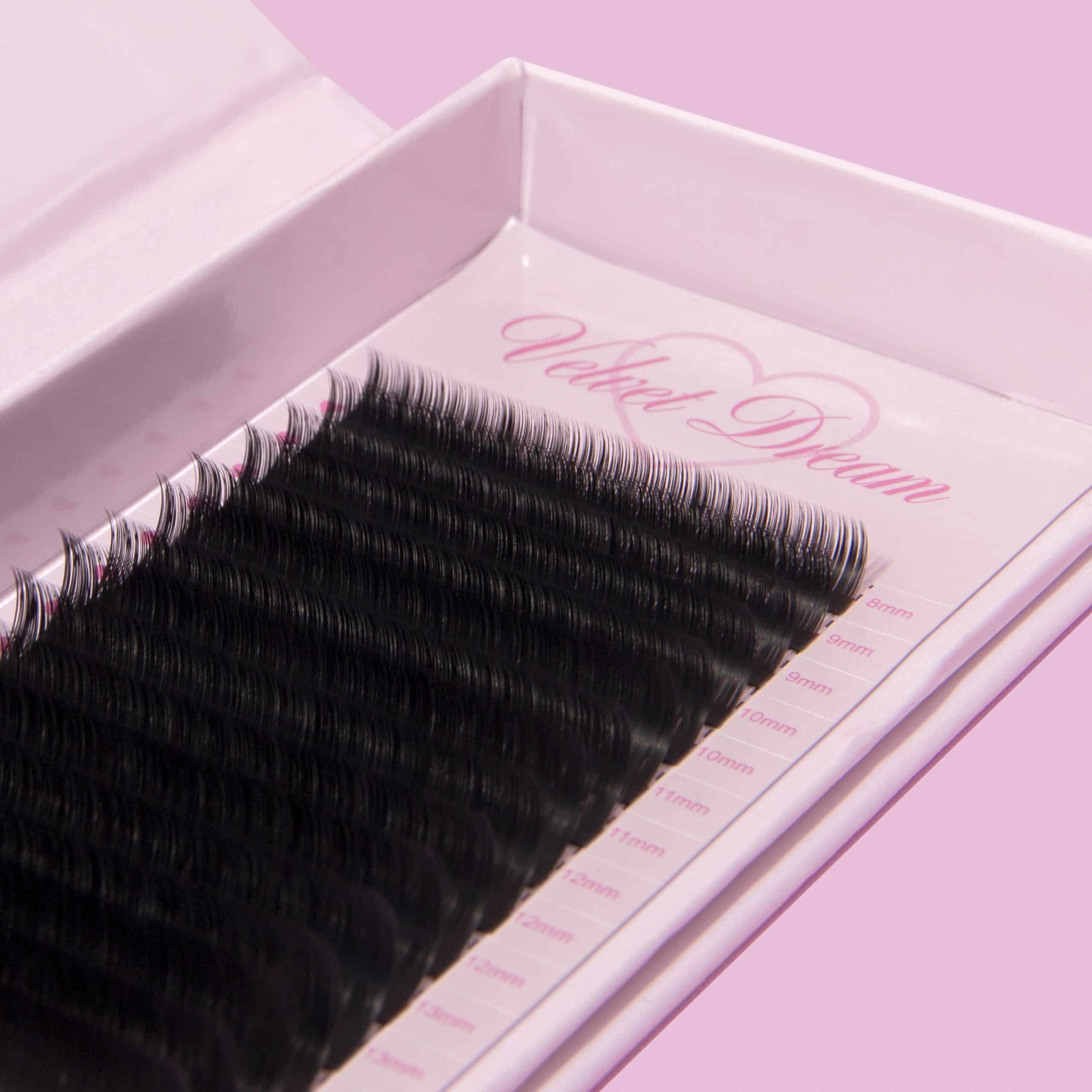 Our Velvet Dream Lash Trays are made from premium 100% Korean PBT fibre, designed to create soft, fluffy lashes that fan effortlessly.